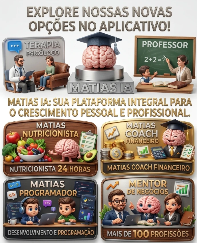 A evolução humana acaba de alcançar um novo nível. Inteligente. Acessível. Ilimitada. Chegou para transformar sua mente, suas decisões e sua vida. Mais controle. Mais clareza. Mais você Caso tenha dificuldade de entender mais sobre o Matias IA, entre em contato.